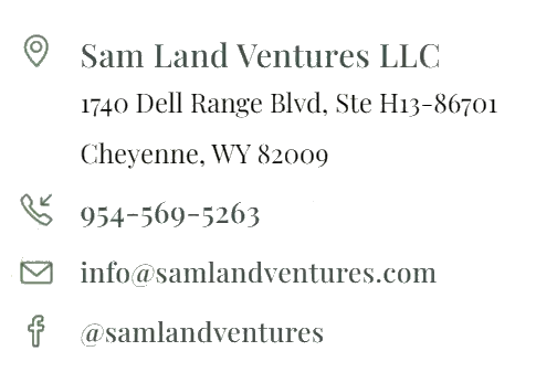 Fill out the form above, or you can also call or text us at (954) 569-5263, email us at info@samlandventures.com, or mail at our Cheyenne WY office